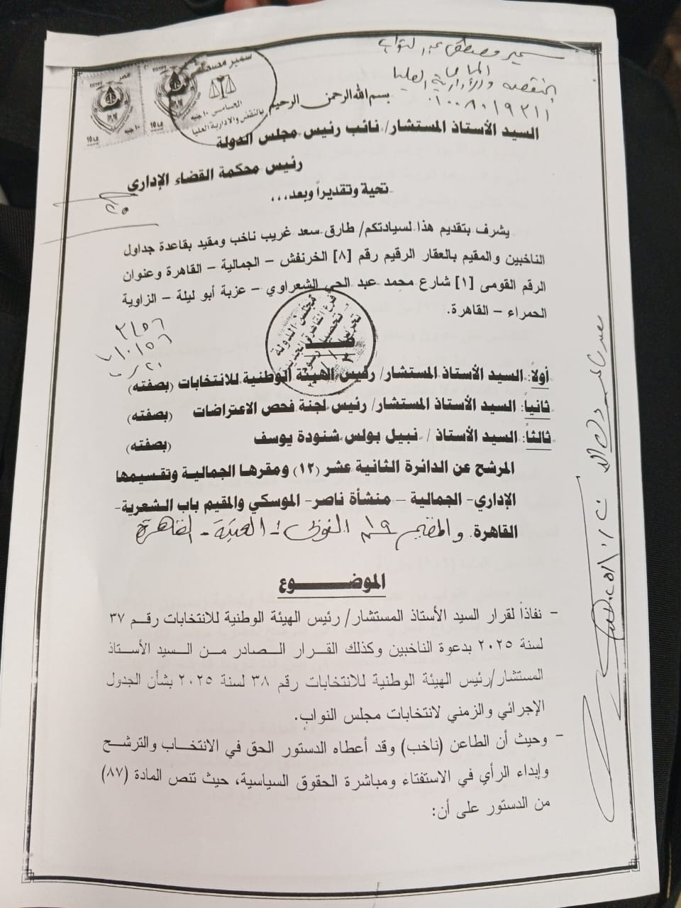 قنبلة انتخابية” في دائرة الجمالية: طعن يطالب باستبعاد مرشح يدّعي “أميته وتزوير شهادته”-مستند
