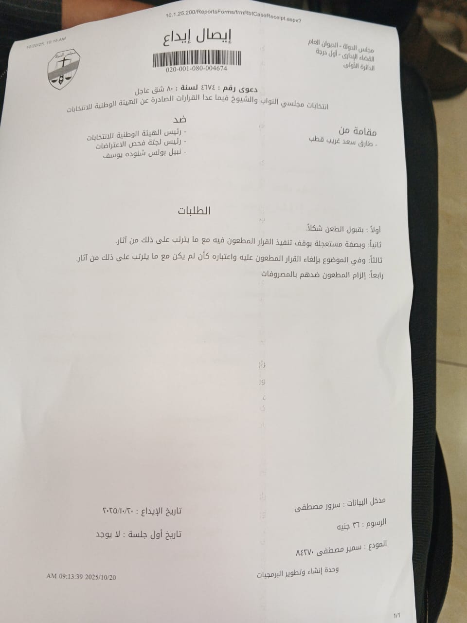 وطالبت المذكرة – على وجه الاستعجال – بوقف تنفيذ قرار القبول وإلغائه “اعتباره كان لم يكن”، وذلك قبل ساعات من إجراء الانتخابات المقررة في 19 أكتوبر 2025، محذرة من أن أي تأخير في الفصل في الطعن سيتسبب في “ضرر لا يمكن تداركه” يهدر حقوق الناخبين والمرشحين، ويقوض مصداقية العملية الانتخابية برمتها.